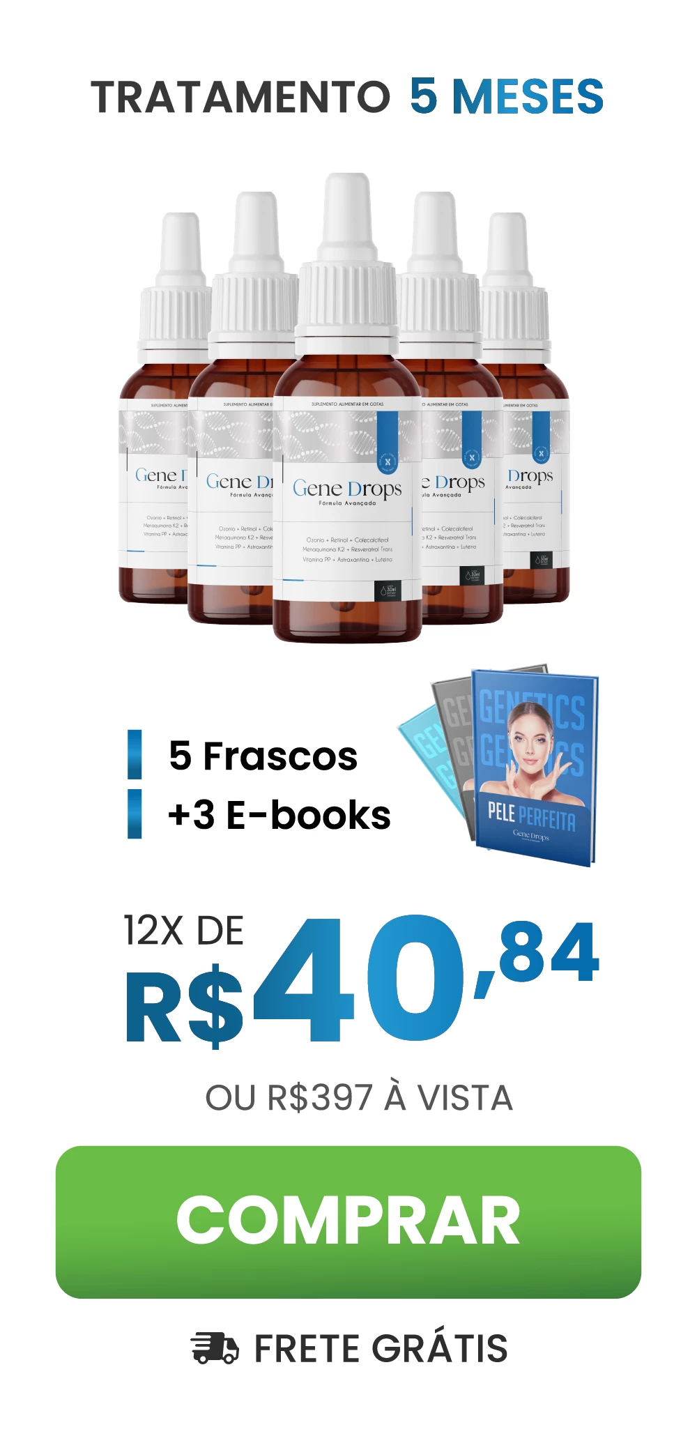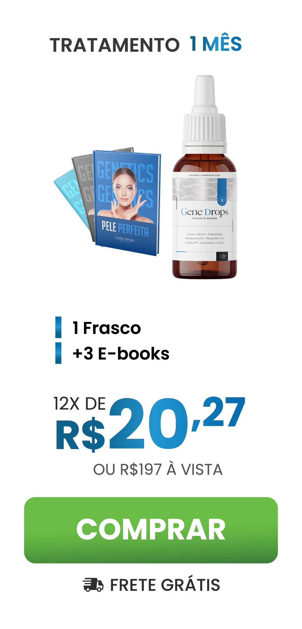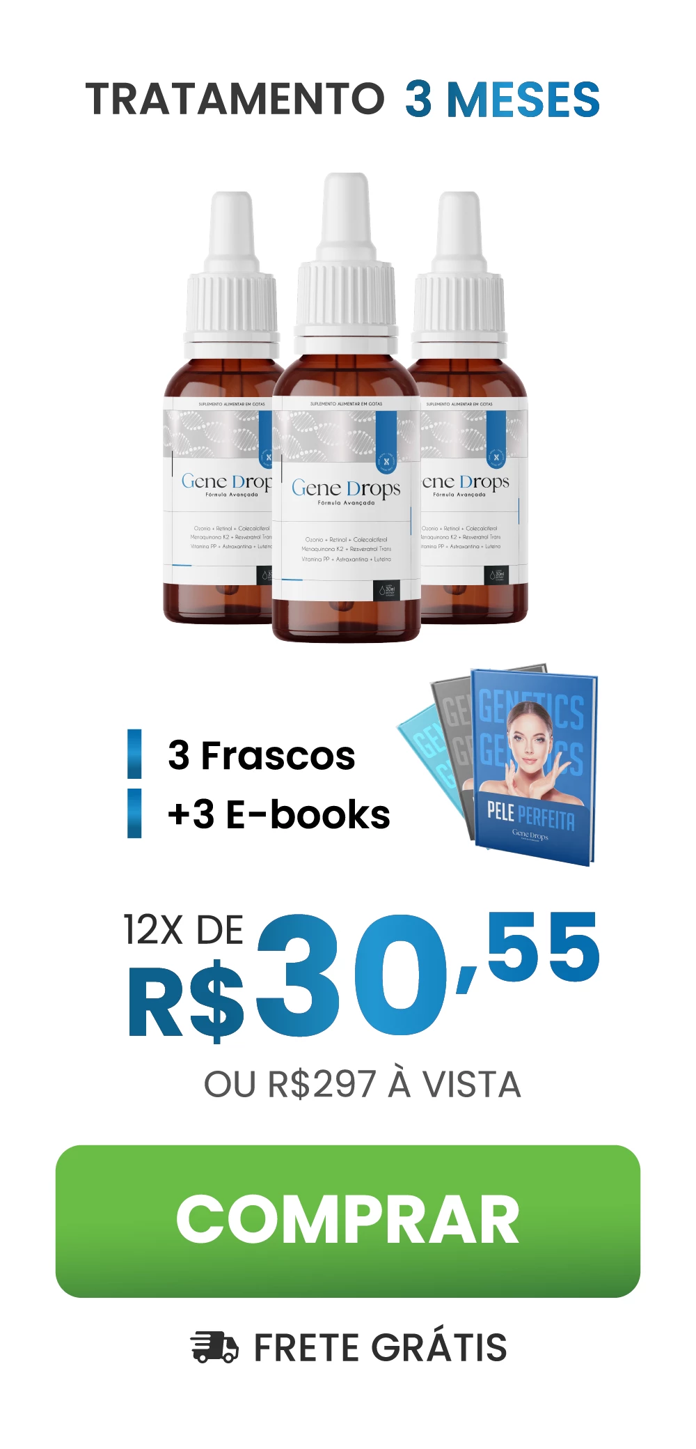 O GENE DROPS é o único que possui ativos importantes para reverter o envelhecimento precoce, sendo eles a Vitamina Menaquinona K2 , Retinol e o Resveratrol Trans, importantes para a redução dos radicais livres que causam o envelhecimento.